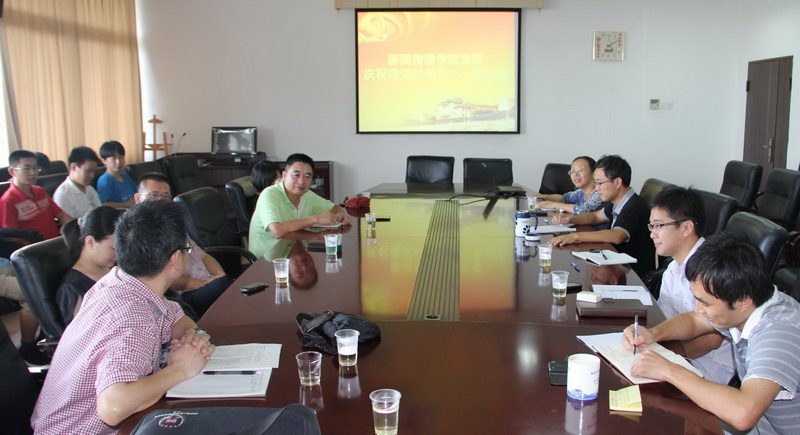 6月27日下午,新闻传播学院4楼会议室内欢声笑语,气氛热烈,新闻传播学院党委在这里举办庆祝建党93周年七一座谈会,学院党委郑树东书记,聂鑫副书记,党委委员岳淼、毛章清老师等与学院师生党员代表坐在圆桌前共同为...