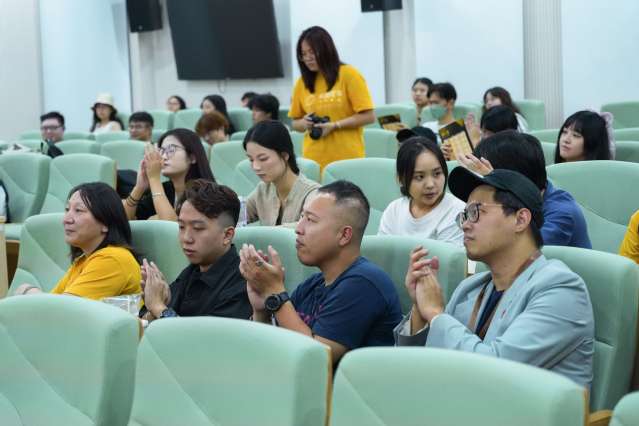 在索尼影感创作坊,特邀讲师张立为学子们带来了关于电影感创作的精彩分享,并现场演示了相关技术和设备。在新闻传播学院实验室二楼202放映厅,来自台湾义守大学的两部VR作品《黑墙 BlackWall》、《祈祷者》让学子们得以得以亲身体验VR影像创作的魅力,并就此进行深入的交流和探讨。