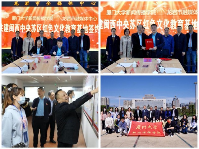 党的十八大以来,新闻媒体行业一直坚持导向为魂、移动为先、内容为王、创新为要,在强基中谋发展,逐渐形成了一股巨大的媒体融合浪潮。14日上午,新闻传播学院与龙岩市融媒体中心共建“闽西中央苏区红色文化教育基地”签约仪式在龙岩市融媒体调度中心举行。此次合作共建红色文化教育基地将为促进厦门大学新闻传播学院关于马克思主义新闻观的研究宣传教育和红色文化教育提供良好的理论与实践相结合契机,也将为龙岩市融媒体中心推进媒体融合、强化全媒型人才队伍培养建设提供助力,推动龙岩经济社会文化建设。双方将发挥各自优势,依靠闽西丰富的红色资源,在理论和业务层面上优势互补、互相促进,在党建工作、实习实践、人才培养和课程合作等多方面展开深入的合作与交流,共同搭建合作共赢平台。