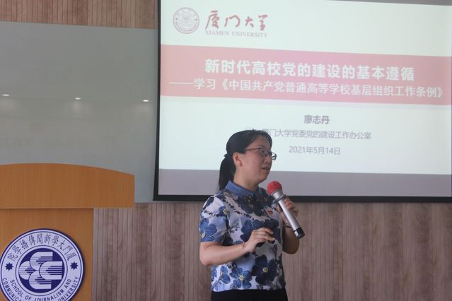 首先,廖志丹作题为“新时代高校党的建设的基本遵循——学习《中国共产党普通高等学校基层组织工作条例》”的专题报告,介绍了《中国共产党普通高等学校基层组织工作条例》修订的背景、过程、意义和遵循的主要原则,根据高校党务工作对《条例》的主要内容进行解析,重点讲解了2021年修订版新增和修改的内容,强调了《条例》在深入贯彻习近平新时代中国特色社会主义思想,贯彻落实新时代党的建设总要求和新时代党的组织路线,坚持和加强党对普通高等学校的全面领导,加强和改进高校党的建设,扎根中国大地办好中国特色社会主义大学方面的重要指导作用;结合基层党务工作典型案例,强调了贯彻落实《条例》的具体要求,为学院党委、党支部对标对表开展工作提供了指导。
