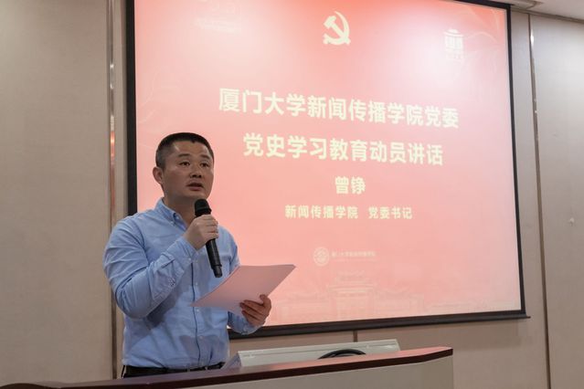 学院党委书记曾铮作动员讲话,强调在厦门大学百年华诞之际,通过深入开展党史学习教育“提神、醒脑、鼓劲”,具有特殊而重要的意义。全院师生员工特别是党员领导干部要充分认识开展党史学习教育的重大意义,确保党史学习教育有序推进、取得实效,为加快推进中国特色、世界水平的一流新闻传播专业建设努力奋斗。