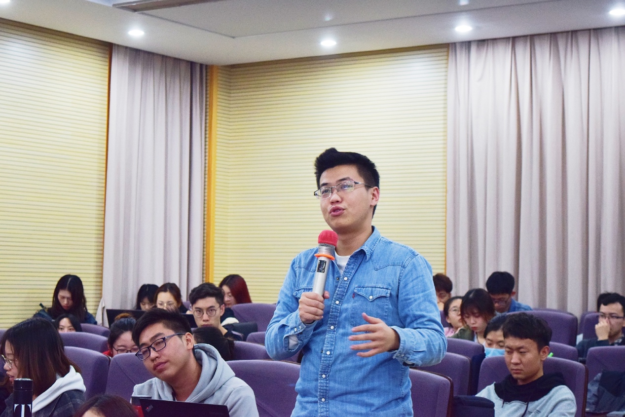 讲座最后的问答环节,同学们积极提问,围绕算法推荐技术,视频内容生产以及互联网技能等展开讨论,谢东升先生认真解答。