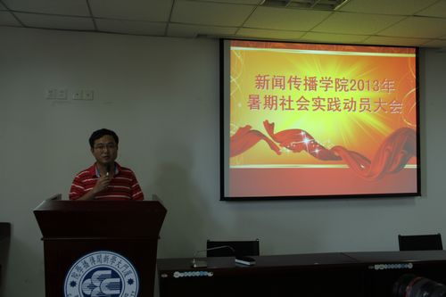 为了介绍和宣传暑期社会实践的意义和成果,动员和组织更多同学投身到暑期社会实践中来,结合往年好的经验与做法,给同学们提供参考和借鉴,做好本年度的暑期社会实践工作,5月29日中午,新闻传播学院团委在新闻楼报告厅举行2013年度暑期社会实践动员大会。学院团委书记戴蓥,团委副书记胡泽红,辅导员黄文、钟书库等与各年级学生代表一同出席。