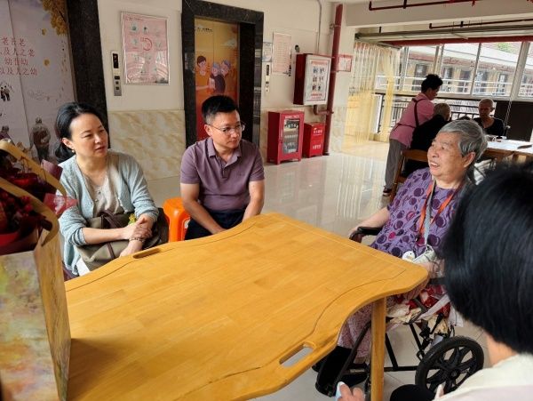 随后,一行人又马不停蹄地赶往龙人·伍心家园养老院,看望邓慧珍老师。邓老师作为目前学院年纪最大的老师,虽然腿脚不便,但思路清晰,精神矍铄。看到大家的到来,邓老师脸上洋溢着幸福的笑容,与大家愉快地交流,分享着生活中的点点滴滴。
