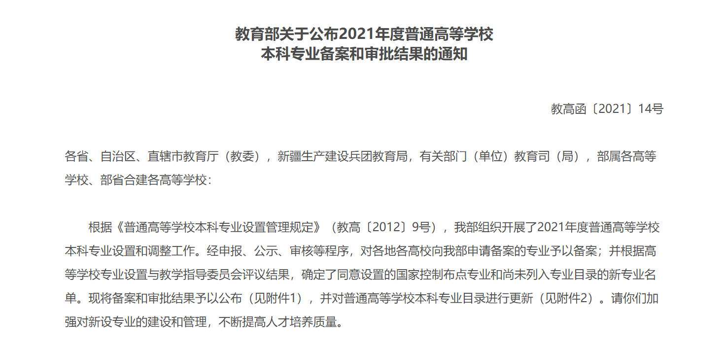 本科专业设置工作调整是教育部以聚焦全面提高人才培养能力为核心点开展的,通过支持高校设置符合办学定位和办学特色的专业,引导高校主动服务国家战略、区域经济社会和产业发展需要。同时,为保障本次专业设置调整工作的公平性和科学性,教育部组织由4300余名专家组成的专家队伍对新设置专业的质量进行把关。经申报、公示、审核等程序,最终确定了同意设置的国家控制布点专业和尚未列入专业目录的新专业名单,其中就包括厦门大学新闻传播学院申报的国际新闻与传播专业。