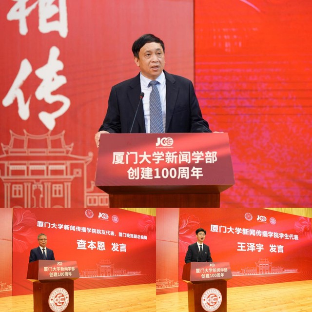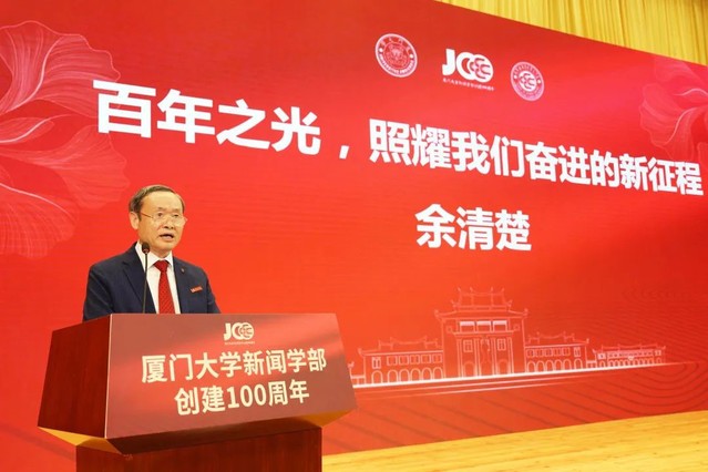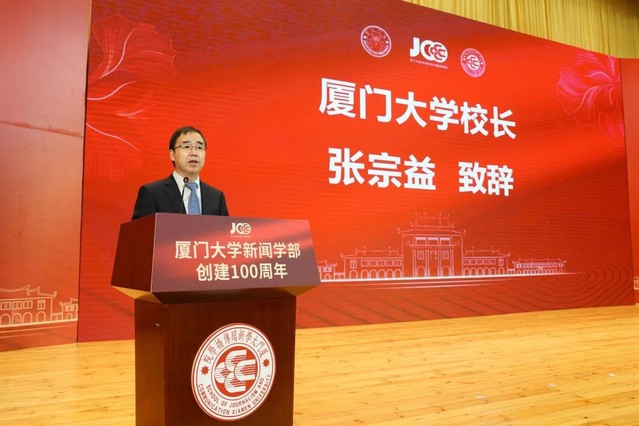 张宗益在致辞中向一直以来关心支持新闻传播学科建设发展的各位朋友表示衷心的感谢,向新闻传播学科的广大师生和海内外校友致以亲切的问候。他指出,厦门大学新闻学部的创建,开启了中国人办新闻学高等教育的先河,书写了我国新闻学高等教育史上的开篇之作。他强调,厦门大学于1983年恢复新闻教育以来,率先以“传播”冠名,组建了中国大陆第一个新闻传播系,并第一个创办广告学专业,第一批开设国际新闻专业,被新华社评为“填补了国内文科教育之空白”。他表示,新闻传播学院于2007年成立以来,构建了本硕博完整的教育体系,使新闻教育和新闻传播学科发展迈上快车道,特别是2014年在厦门大学与福建省委宣传部共建基础上,有效促进了学界与业界互动、教学与科研贯通、理论与实践结合,深入开展马克思主义新闻观教育,不断推进中国特色社会主义新闻理论研究,培养了一大批优秀人才,为我国新闻传播事业发展贡献了积极力量。他提出,在我国已开启全面建设社会主义现代化国家新征程,我校已迈上世界一流大学建设的新的历史起点上,新闻传播学院要认真学习贯彻习近平总书记关于新闻舆论工作和教育的重要论述精神,以习近平总书记致厦门大学建校100周年重要贺信精神领航,持续加强马克思主义新闻观教育,大力培养新闻传播卓越人才,不断提高科研水平,积极服务国际传播能力建设,发扬优良办学传统,凝练学科专业特色,加强人才队伍建设,落实立德树人根本任务,不断开创事业发展新局面。
