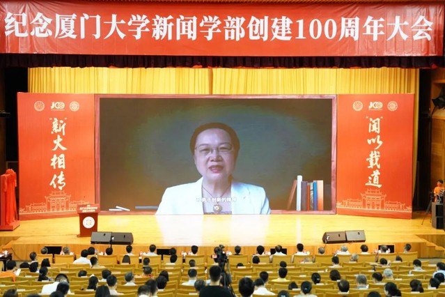 中国新闻史学会会长王润泽对厦门大学新闻学部创建100周年表示衷心的祝贺。她充分肯定了厦大新传人敢为天下先的开拓精神,以及立足“三海”这一本土优势寻找专业特色的突破性尝试,期望新闻传播学院创设的“台湾与海外华文传媒专业委员会”能够继续在国家形象塑造与对外传播上发力,贡献自身力量。