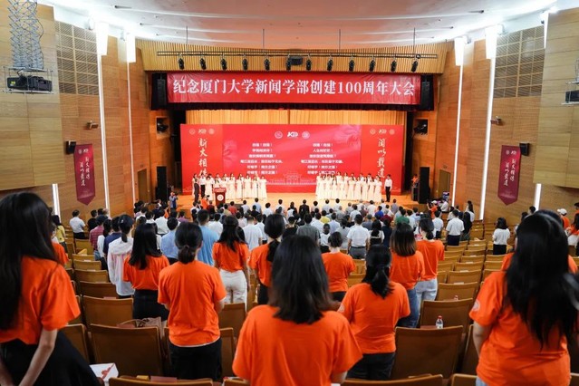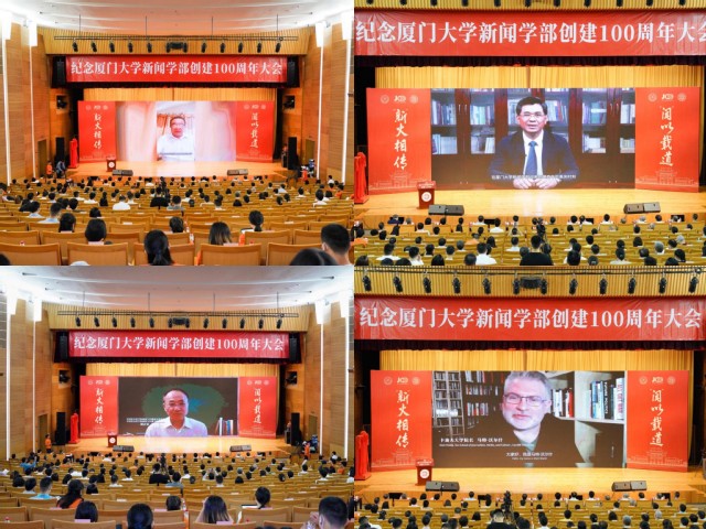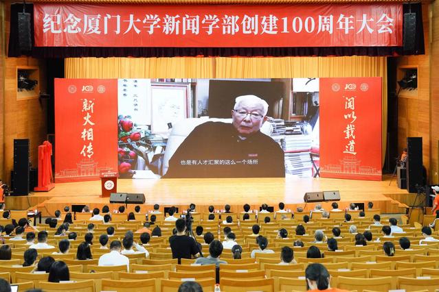 火红六月,凤凰花开;百年学部,风华正茂。6月5日上午,纪念厦门大学新闻学部创建100周年大会在科学艺术中心三楼报告厅举行。厦门大学校长张宗益,福建省委宣传部副部长、省政府新闻办主任叶雄彪,厦门大学党委常委、副校长邓朝晖,兄弟院校代表,媒体单位代表,学校机关部处、基层学院、附属单位领导,新闻传播学院合作单位代表、离退休老同志、校友会代表、海内外校友以及师生代表等参加大会。本次大会通过人民网直播,以线上与线下相结合的方式进行。纪念大会由新闻传播学院党委书记曾铮主持。