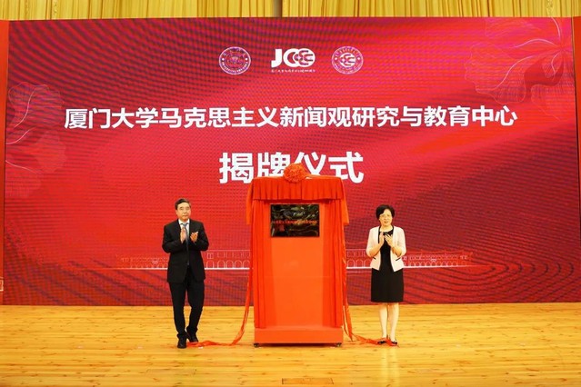 会上,举行了厦门大学马克思主义新闻观研究与教育中心揭牌仪式,叶雄彪与邓朝晖为中心揭牌。