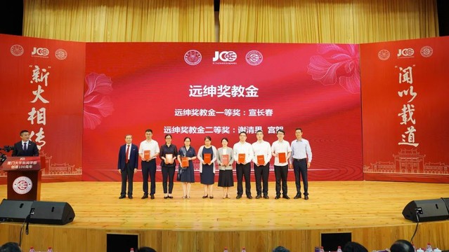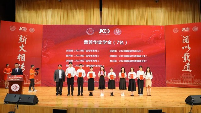 大会还举行了2022年新闻传播学院奖学奖教金颁发仪式。余清楚与捐赠代表、深圳院友会会长、1985级院友、深圳市前海青藤基金管理有限公司董事长樊烈, 2014级院友、武汉胖六文化传播有限公司总经理颜远绅,2016级院友、厦门艾迪英赛网络科技有限公司媒介策划总监孔贝儿分别为获奖师生代表颁奖。