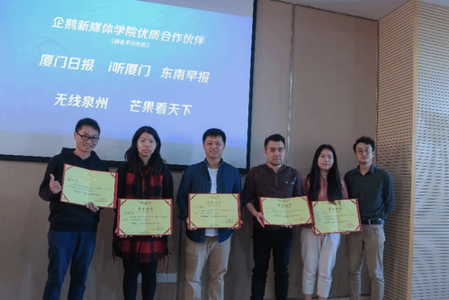活动现场,朱自洁也为厦门日报、i听厦门等媒体颁发了企鹅新媒体学院优质内容合作伙伴荣誉证书,并合影留念。