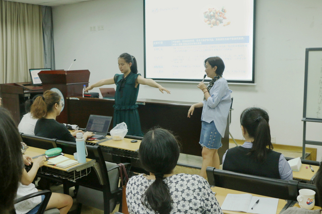 除了让同学们亲自嗅吸精油、学习呼吸外,莫老师还详细讲解了另外一种放松身心、消除紧张的方式——高效能字母操,通过这个小小的活动方式,可以让人在紧张的时候让身体达到无意识状态,进而缓解焦虑情绪。为了让同学更好地理解心理状态对人体的影响,莫老师特地请同学上台进行了演示,展示了开心和悲伤两种不同状态下,肌肉紧张程度的变化。
