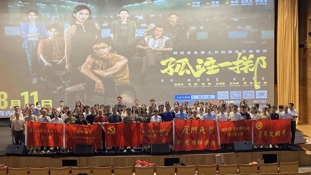 为进一步做好防范电信网络诈骗宣传教育,引导师生党员增强反诈意识和防骗能力,9月21日晚,新闻传播学院党委与校保卫部(处)党支部,后勤集团综合党支部,校人才办/人事处党支部,校资产与后勤事务管理处、招投标中心联合党支部等校部机关党组织联合开展安全教育主题“固定党日+”活动,组织师生党员在科艺中心报告厅集中观看近期热播的反诈题材电影《孤注一掷》。
