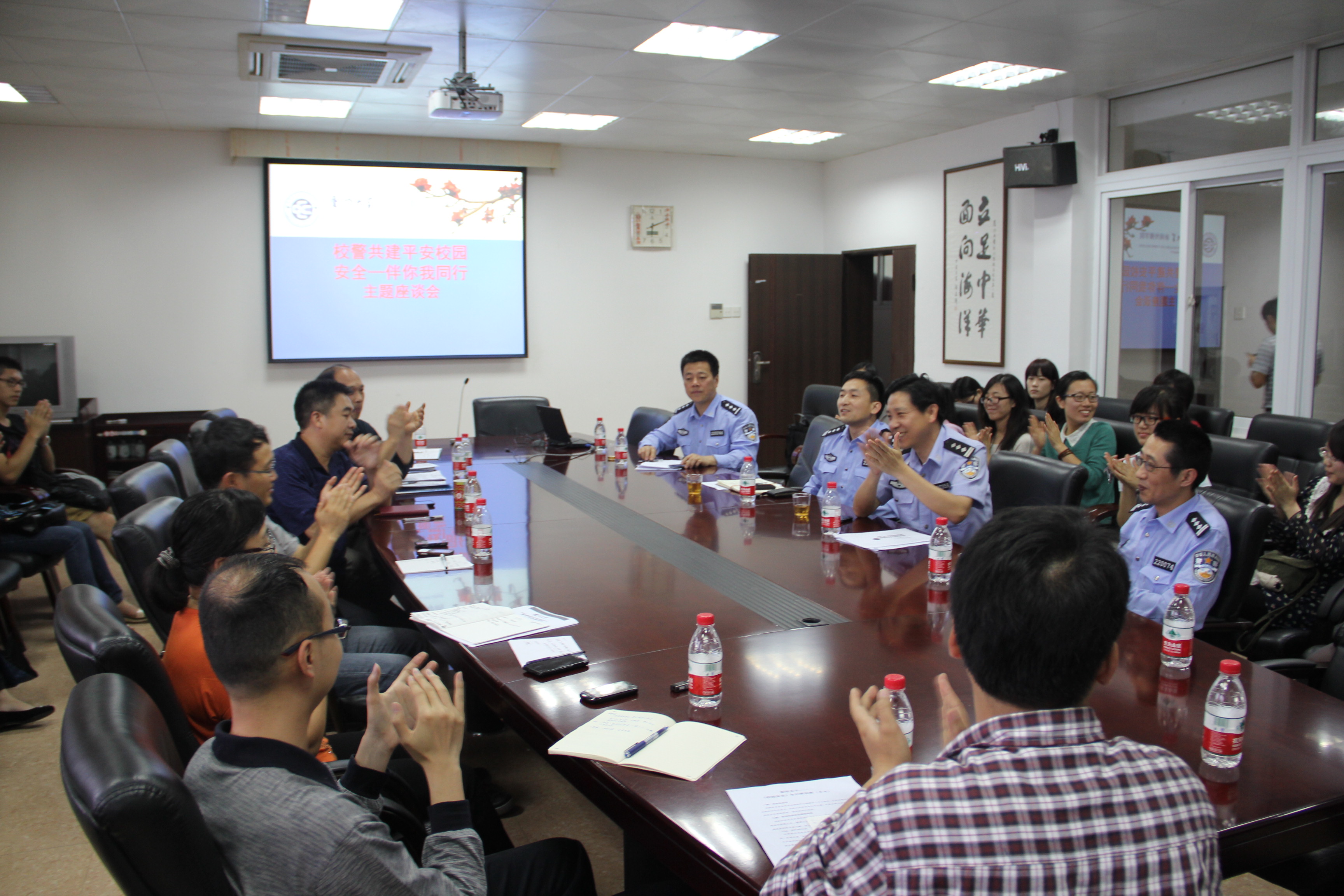 为进一步加强大学生的安全防范意识,提升大学生的自我保护能力和安全风险控制能力,增强校园安全教育的效果, 5月8日下午,大学路派出所干警莅临新闻传播学院开展工作调研,与学院师生共话平安校园。大学路派出所所长陈永清、教导员郭文波、副所长傅宏江、干警陈瑞华等;新闻传播学院党委书记郑树东、党委副书记林盛铨、党务秘书、辅导员以及各年级学生代表一同出席。座谈会由林盛铨主持。