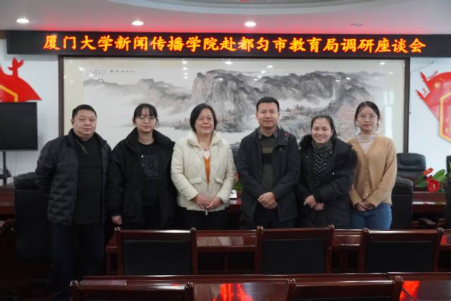 在都匀市教育局,李芬芬一行看望了毕业生刘雨嫣,并与都匀市教育局副局长许明原、办公室负责人王延荣、工作人员石庆行等进行了座谈交流。双方就都匀市教育系统厦大毕业生发展情况、如何加强对选调生的培养等方面展开了深入交流。