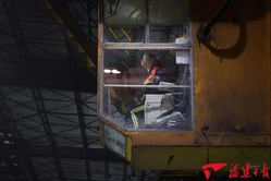 操作员正在操纵吊装机安置生产部件。(通讯员 林宇阳/摄)