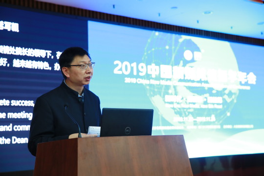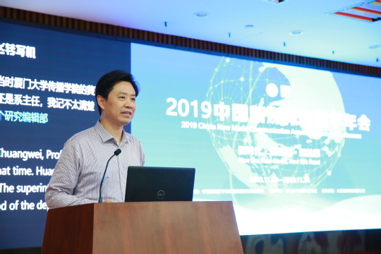 厦门大学新闻传播学院院长余清楚致开幕辞。余清楚院长说道:今年习近平总书记在中共中央政治局就全媒体时代和媒体融合发展举行第十二次集体学习中强调,推动媒体融合发展、建设全媒体成为我们面临的一项紧迫课题,要运用信息革命成果,推动媒体融合向纵深发展,做大做强主流舆论。这是对我们新媒体领域的理论工作者和新闻工作者提出的重要任务。