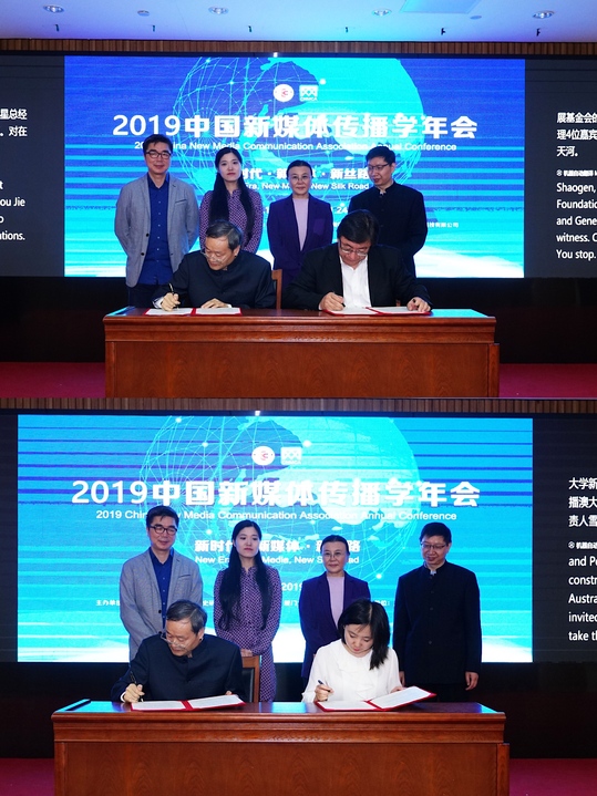 开幕式中举行两场签约仪式,厦门大学新闻传播学院与华夏传记(北京)文化发展有限公司、人民网澳大利亚公司分别进行合作项目签约。