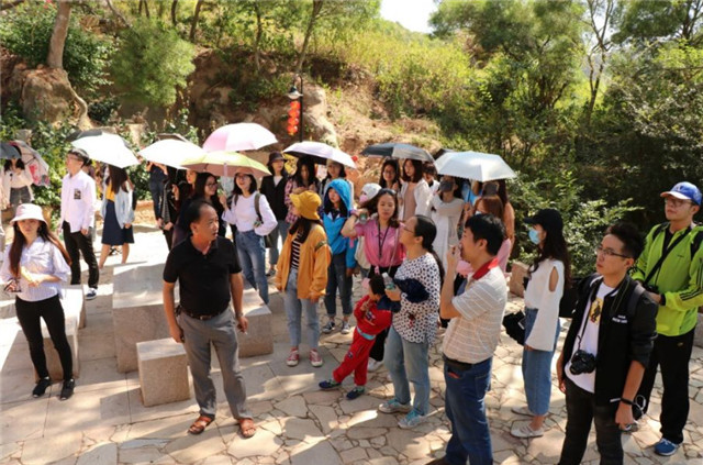 最后一站,新传研会成员穿过望梅亭、修文阁、蔡新讲学处等景点,最终前往古堡山顶,俯瞰三尾村全貌,一览众山小的感觉让师生们心旷神怡,真切体会到新农村建设的力量以及基层党建对乡村振兴的积极推动作用,活动也随之落下帷幕。