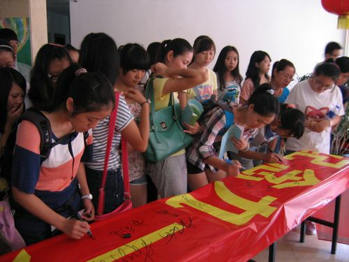 为纪念“九一八”事变爆发81周年,加强学生的爱国主义教育和革命传统教育,鼓励和引导学生理性表达爱国情怀,9月18日,新闻传播学院在新闻楼大厅隆重举行“纪念九一八,唤醒民族魂”爱国签名活动。学院党委书记邓朝晖、党委副书记林盛铨、叶虎带头在横幅上签下自己的名字。各年级的同学们也纷纷在横幅上签下自己的名字。不少老师结合历史和现实,在现场即兴向新生进行爱国主义教育,勉励他们立足本职,努力学习,理性表达爱国情怀,以饱满昂扬的姿态和优异的成绩迎接祖国的召唤,为中华之崛起而自强不息。