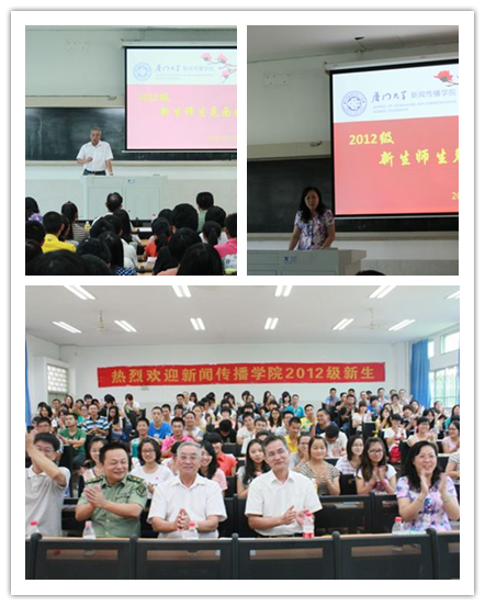 常务副院长黄星民回顾和介绍了新闻传播学院悠久的办学历史,勉励同学们认识和把握中华民族21世纪“走向海洋”的历史使命,成长为一名始终站在时代前沿的新传学人。南京军区驻厦门大学选培办金振宇中校以“仰慕已久、今朝牵手,来日方长、共创辉煌”为主题,对新闻传播学院对国防生和国防事业的关注与支持表示感谢,希望2012级国防生与全体新传新生一道,互相帮助、互相促进、共同成长。副院长黄合水希望同学们在生活、学习、思想等多方面,学会独立判断、勇挑责任;叮嘱同学们珍惜时光,积极跟踪学术前沿,打下扎实的治学基础。副院长赵振祥希望同学们勤于学习、善于学习,拓展专业视野,深刻理解嘉庚精神,烙上厦门大学的“精神印记”。