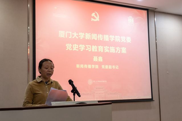 学院党委书记曾铮作动员讲话,强调在厦门大学百年华诞之际,通过深入开展党史学习教育“提神、醒脑、鼓劲”,具有特殊而重要的意义。全院师生员工特别是党员领导干部要充分认识开展党史学习教育的重大意义,确保党史学习教育有序推进、取得实效,为加快推进中国特色、世界水平的一流新闻传播专业建设努力奋斗。