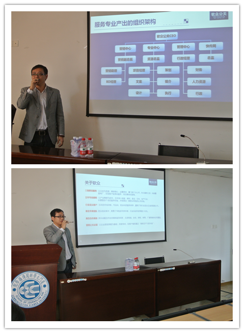 宣讲会从软众公关的介绍开始,主讲人张龙聪作为软众公关的执行副总经理,在品牌行销行业有着九年的从业经历,积累了深厚的营销基础。他在介绍软众公关核心价值、竞争优势以及客户案例的同时,与大家分享了他宝贵的从业经验与感悟――“我们认为,传播的本质是营销,公关的本质是营销,品牌的仍然是营销,只有从营销的角度出发,公关传播才能真正最大化发挥实际效益,为客户创造价值。”。