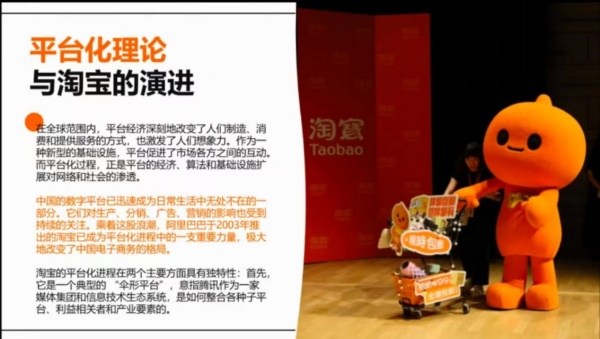讲座围绕淘宝平台化进程及其对中国原创设计女装电商的影响展开深入探讨。许德娅老师指出,淘宝作为“伞形平台”在中国电子商务领域中的具有独特地位,其平台化进程不仅改变了中国电子商务的格局,也对原创女装电商的生产和商业策略产生了深远影响。