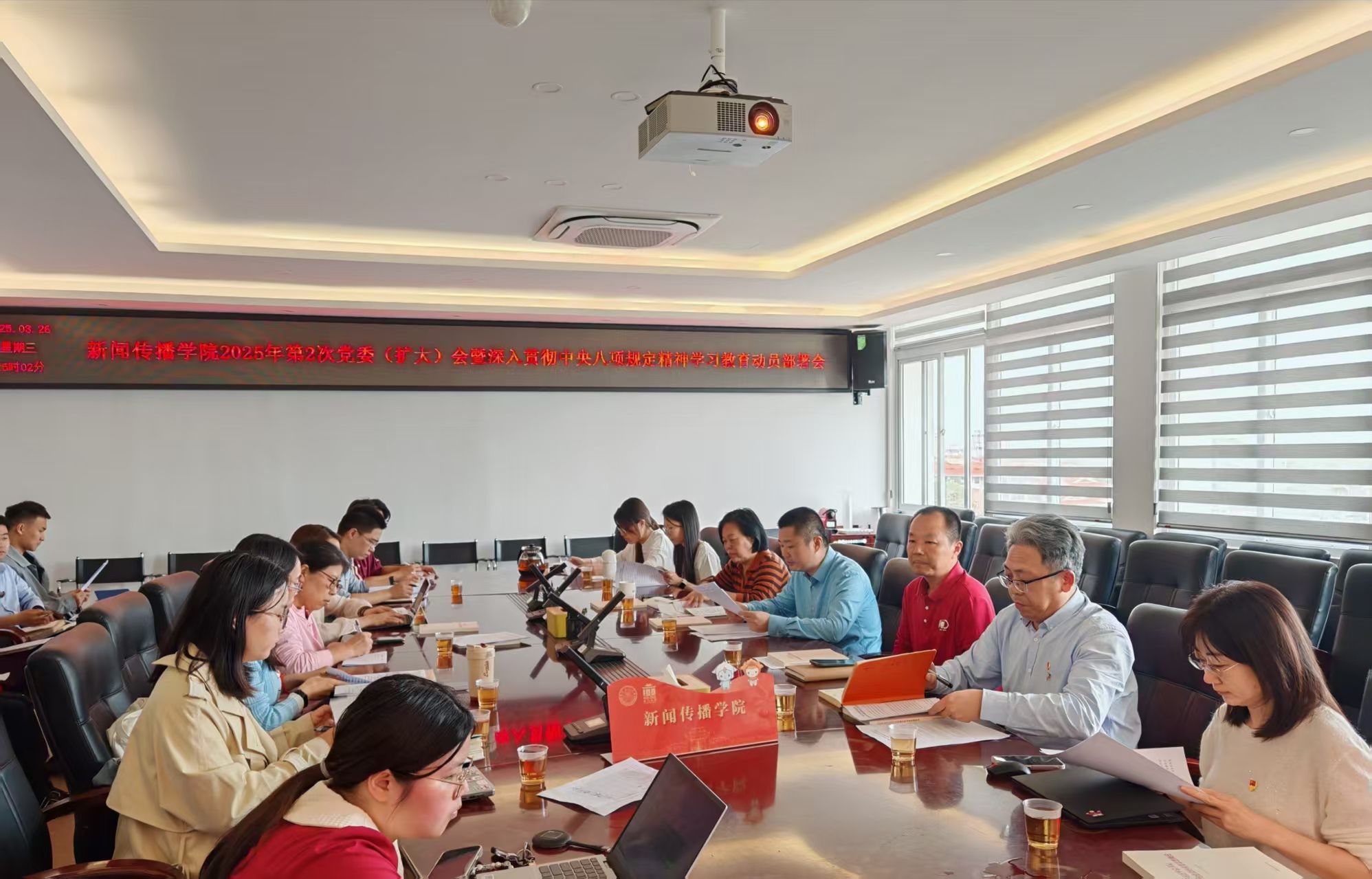 3月26日下午,厦门大学新闻传播学院召开党委扩大会议,就深入贯彻中央八项规定精神学习教育工作开展动员和布置。院党委书记曾铮、院长林升栋、院党委委员、各师生党支部书记出席会议。
