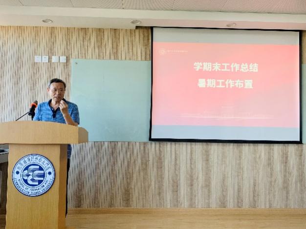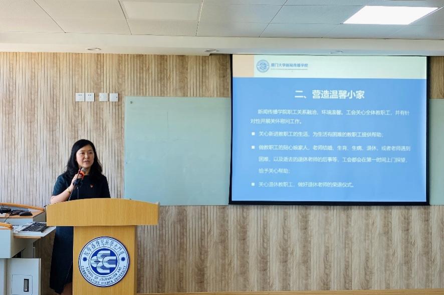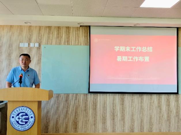 投票结果统计间隙,新闻传播学院召开学期末工作总结大会,布置暑期工作。党委副书记李芬芬对学院2022届毕业本科生和研究生的就业情况进行报告;副院长苏俊斌就福建省委宣传部“闽人智慧”短视频项目工作进行布置;副院长谢清果对本学年本科教学工作情况作了详细汇报说明;党委书记曾铮总结,本学期学院工作整体上稳步推进,未来还需所有教职工一起努力,引导学生“既要好就业,也要就好业”、要“上大舞台,做大贡献”;院长余清楚进一步补充说,就业情况是学院育人工作的品牌,要推动教学、实习实践与就业紧密结合,培养高质量的毕业生,为学院增光添彩。