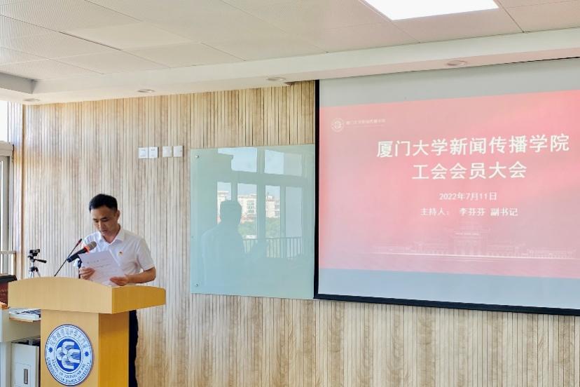 会议首先由院团委书记胡长占宣读校工会《关于同意新闻传播学院部门工会委员会委员、主席候选人的批复》,紧接着简要介绍了委员候选人名单的产生过程。会议以举手表决的方式先后通过了《厦门大学新闻传播学院工会第四届委员会委员选举办法》以及总监票人、监票人名单,并确定了总计票人、计票人名单。