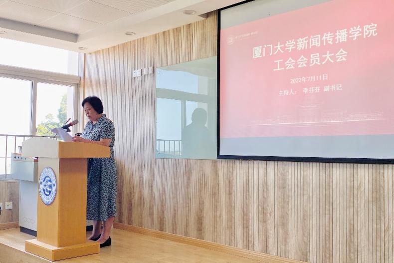 7月11日下午,新闻传播学院在新闻楼309教室召开工会会员大会,选举新闻传播学院第四届工会委员会委员。新闻传播学院党委书记曾铮、院长余清楚,党委副书记李芬芬,副院长苏俊斌、陈素白、谢清果,工会主席迟月利以及学院教职工共计46人参加大会。大会由李芬芬主持。