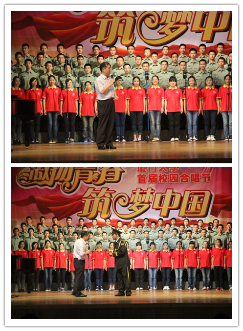 5月19日晚,在“激扬青春,筑梦中国”厦门大学首届校园合唱节上,新闻传播学院合唱队与各学院合唱队、国防生合唱队、学生艺术团合唱队等24支队伍,近1000余名厦大学子,共同唱响自强不息的南强乐章。校党委书记杨振斌,校党委副书记、纪委书记赖虹凯,校党委副书记林东伟,党委宣传部部长徐进功、副部长楼红英,学生工作部(处)长夏侯建兵,离退休工作处长郑建华,校团委书记陈怀峰等领导老师作为嘉宾出席了本次合唱节。