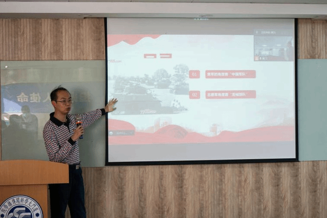学院党务秘书、新闻学系本科生党支部书记黄文以《抗美援朝,我们是怎么“赢”的》为题开场,从军事的角度分享关于抗美援朝出国作战的战略考量、基层战术和思想政治工作,重点讲解了“三三制”“穿插战术”“反斜面”等志愿军基层指战员常用的战术战法,结合图片和短视频与老师同学们一起领略了志愿军高超的战场指挥艺术和精妙的战术设计,澄清了“人海战术”等传统错误概念,同时介绍了抗美援朝出国作战胜利在重塑中华民族精神气质、传播新中国国际形象等方面留下的深远影响。