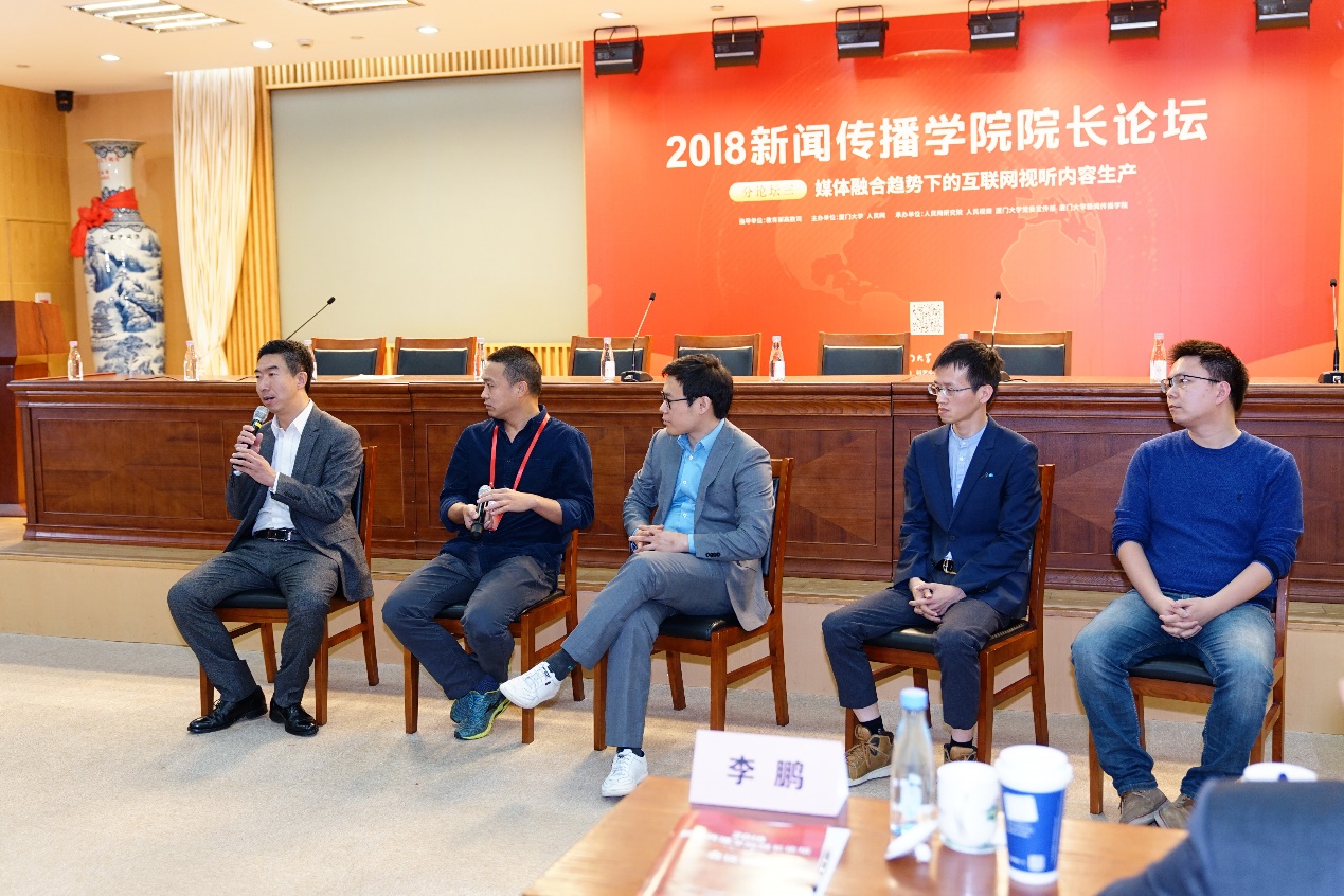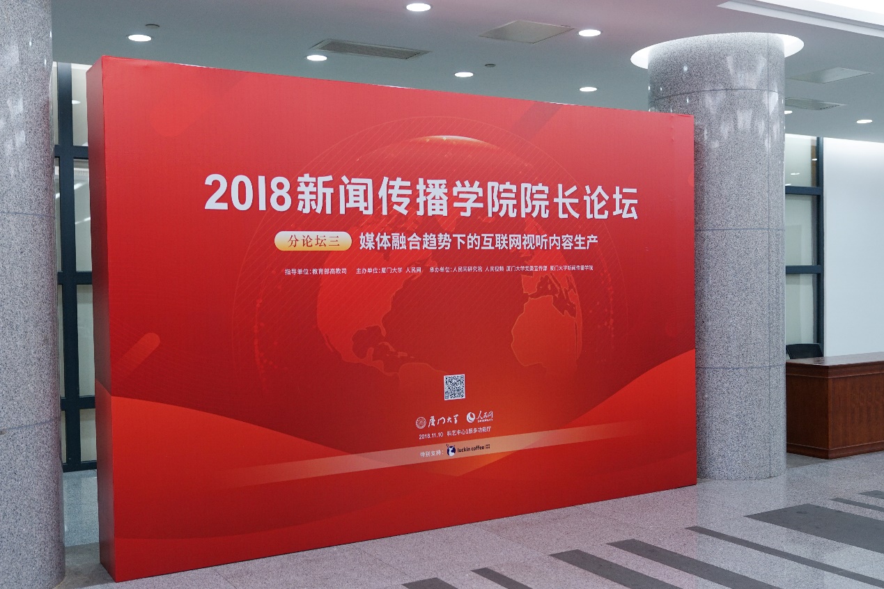 11月10日下午3点,由厦门大学和人民网联合主办的“2018新闻传播学院院长论坛”之分论坛三——“媒体融合趋势下的互联网视听内容生产”在厦门大学科艺中心一楼多功能厅举行。本次论坛以业界和学界的精英分享为主,旨在通过分享会和圆桌对话等形式,促进产学合作、融汇共通,为新传媒体人提供更为广阔的交流平台。