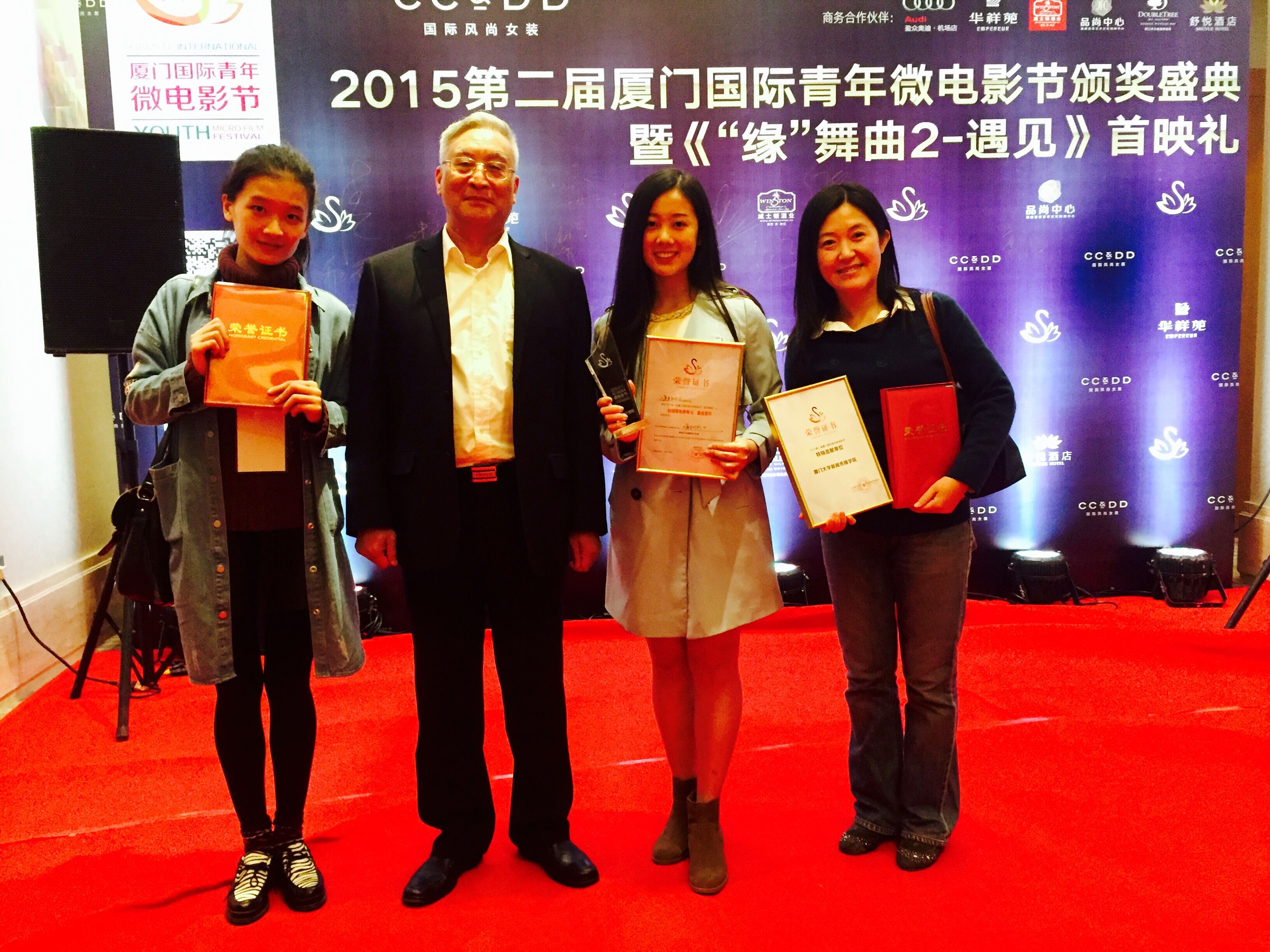 我院学生拍摄的以校园为故事背景的《厦至45.8℃》,获校园微电影单元最佳影片奖。新闻传播学院院长张铭清亲自为获奖作品《厦至45.8℃》的团队代表,执行制片葛静颁奖。同时,李嘉洁团队的《黑夜里我们都是盲人》入围校园微电影单元优秀影片,沈梦婷团队的《Eyear》入围品牌广告微电影单元做手影片。厦门大学新闻传播学院被评为2015第二届厦门国际青年微电影节特别贡献单位。