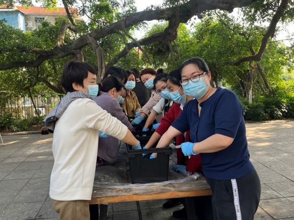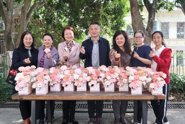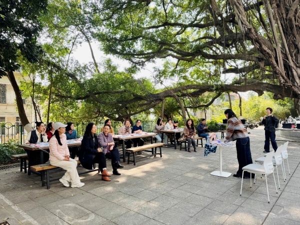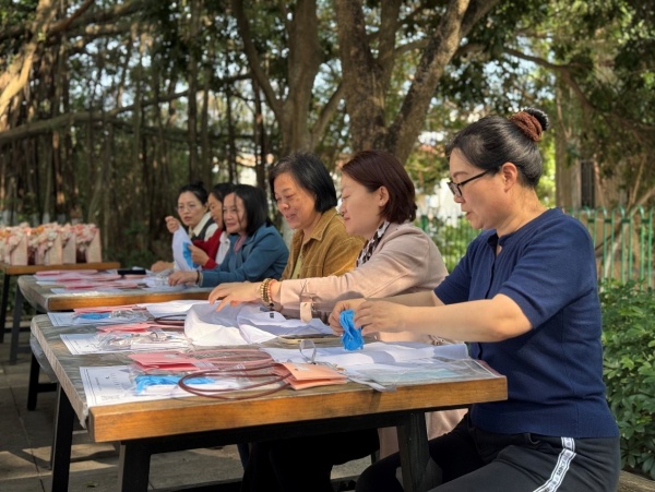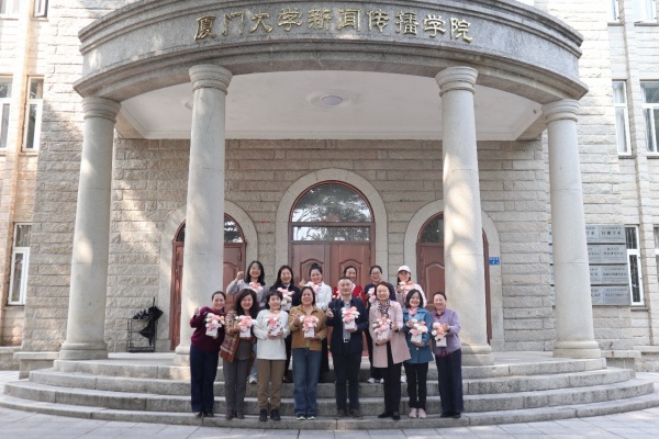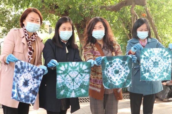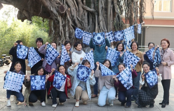 2025年3月10日下午,新闻传播学院南光二院楼前的大榕树下,新闻传播学院举办的以“千姿百态,古朴自然”为主题的三八节扎染活动正在进行。学院党委书记曾铮老师为女同胞们送上真挚的祝福。