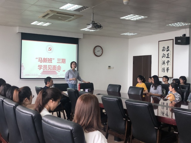 蔡笑霜老师首先向三期的学员们介绍了我院“马新班”的基本情况。她指出,厦门大学新闻传播学院学生“马克思主义新闻观理论研修班”(简称“马新班”),是积极落实2016年全国高校思政工作会议精神和学校“部校共建”战略的一项创新举措,每年在本科生、研究生中选拔有理想有追求的优秀学员,进行为期三年的集中培养,重点开展理论学习、专题调研、社会实践等活动,由学院党政领导担任班主任,邀请学校理论报告员、业界专家、杰出院友和学院党员教师等组成导师团,校外班辅导员与校内辅导员一同担任指导老师,引导学生自觉凝聚在党的旗帜下,坚持用马克思主义新闻观的最新成果一一习近平总书记关于新闻舆论工作的重要论述武装头脑。让“马新班”成为创新培养具有家国情怀、国际视野的高素质、全媒化、复合型、专家型新闻传播后备人才的阵地,将学生培养成为党的政策主张的传播者、时代风云的记录者、社会进步的推动者、公平正义的守望者。
