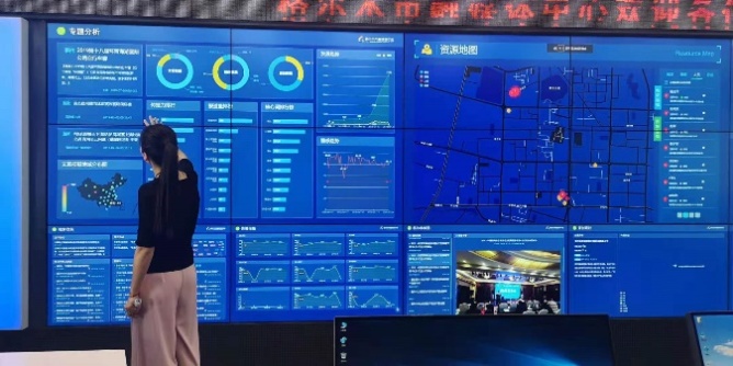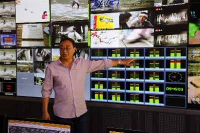 技术总工杨玉年带领厦大马新班实践队来到融媒体指挥调度中心里,在巨大的数字面板上显示着新闻专题分析、传播指数、线索收集、文章报道地域图、发展与情感趋势等一系列数据,从各方面对新闻进行系统分析。同时,面板显示资源地图,其中利用GPS定位展示线索、人员与设备的地区分布情况,且调度中心可直接连线记者人员,大大提高了新闻挖掘与传播的效率。