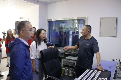 参观区域还包括广播制作室、新闻录播厅等工作区。杨玉年指出,格尔木广播与电视的直播节目仍然较少,而其主要原因是缺乏通道和平台。通过杨总工耐心详细的介绍与展示,实践队员们不仅感受到融媒体中心CDR音质的广播与高清化电视的视听效果,且了解到中央数字电视发射机与广播发射机等专业设备的工作状况,加深了对广播电视运作机制的理解。