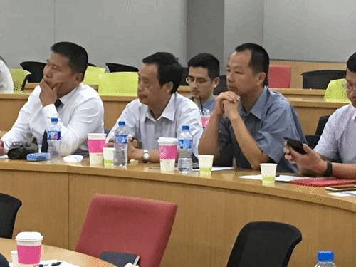 (陈培爱教授和林升栋教授认真聆听韩方博士生发表演讲)