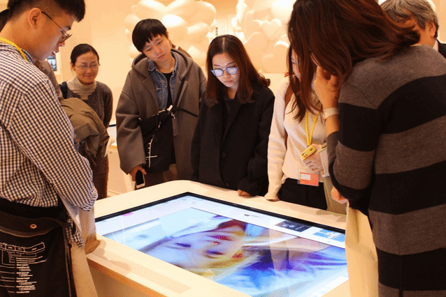 (新传学子们在参观广告博物馆的智能视频显示器)