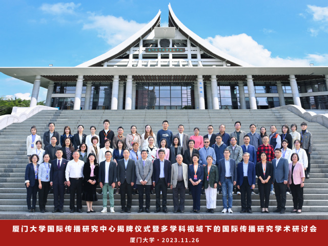 2023年11月26日,厦门大学国际传播研究中心揭牌仪式暨多学科视域下的国际传播研究学术研讨会在思明校区举行。近百位专家学者齐聚鹭岛,共话国际传播。