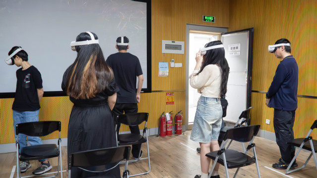 在索尼影感创作坊,特邀讲师张立为学子们带来了关于电影感创作的精彩分享,并现场演示了相关技术和设备。在新闻传播学院实验室二楼202放映厅,来自台湾义守大学的两部VR作品《黑墙 BlackWall》、《祈祷者》让学子们得以得以亲身体验VR影像创作的魅力,并就此进行深入的交流和探讨。