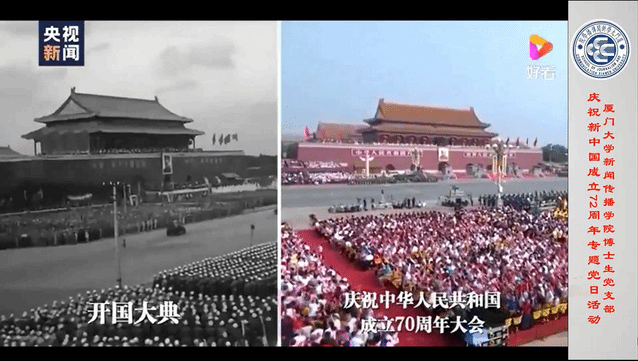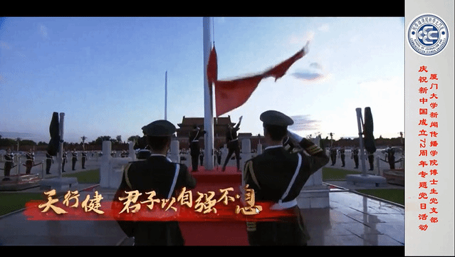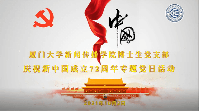 10月2日,新闻传播学院博士生党支部以线上方式开展了“庆祝新中国成立72周年”主题党日活动,组织全体博士生党员回顾新中国成立奋斗发展史,学习中国共产党人牢记使命、永葆初心,坚持为人民谋幸福,为民族谋复兴,为世界谋大同的崇高使命和伟大精神。活动由博士生党支部书记战泓玮主持。