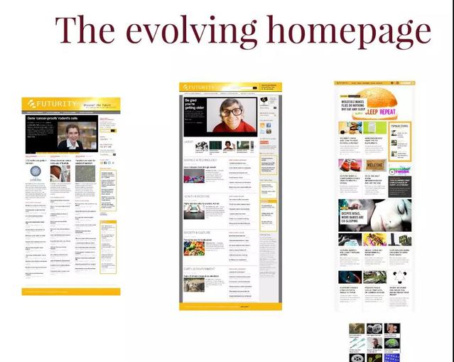 接着,张艺琼老师列举了Futurity的三个版本,分别是09年、11年和13年,这三个版本不能视为同一体,当一个网站变到一定程度就可以认为是一个新的版本。张艺琼老师又详细讲解了三个版本的不同。在第一个版本中,无论是内容,还是形式,呈现的是一个科学的世界;在第二版本中,开始运用图片库,构建的世界就非常有限了,没有太多的背景知识;而第三版本的表现则更加日常化,呈现出的科学是和我们相关的。张艺琼老师提到,当科学变得日常化的时候,我们不得不需要思考会带来什么。过去的科学世界很遥远,但会有一种崇敬的心情,可是当开始使用图片库的时候,带来的又是什么呢?