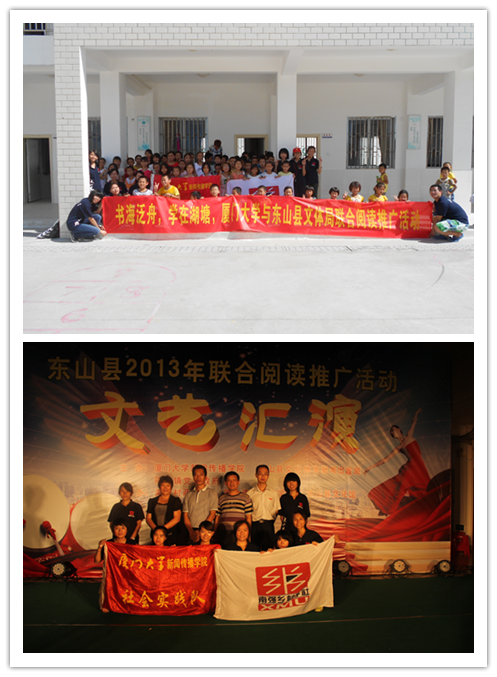 为充分展现一周来的实践成果,8月3日晚上,由厦门大学新闻传播学院、东山县文化体育新闻出版局、陈城镇党委政府联合举办的“东山县2013年联合阅读推广活动文艺汇演”在湖塘村隆重举行。东山县文化馆、湖塘村两委、南强乡村学社实践队队员和湖塘村小学生等联合表演了十八个节目,为当地村民献上了一场视听的盛宴。其中,