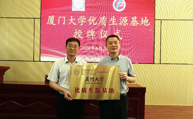 首先举行优质生源基地授牌活动,党委书记曾铮肯定了南康中学作为厦门大学在江西省的优质生源重要来源学校,多年来为厦门大学输送了数位优秀学生。此次授予南康中学“优质生源基地”称号,期待双方未来加强合作,同时也鼓励更多的优秀学生报考厦门大学。