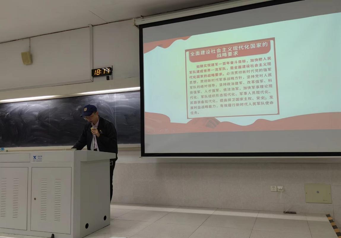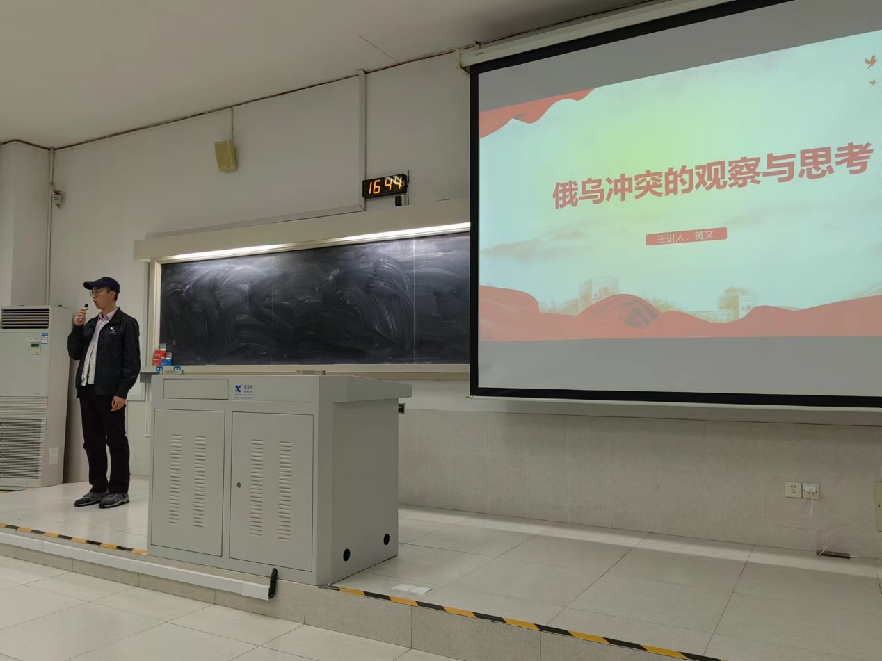 2022年12月5日,新闻传播学院党务秘书黄文为2022级本科生上了一堂题为《俄乌冲突的观察与思考》的国防教育课。