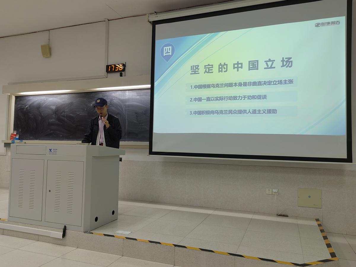为了让同学们更加清晰地了解中国的外交立场,黄文老师强调了中国始终坚持以和平方式解决俄乌冲突,始终坚持客观公正的态度,坚持作出独立自主的判断。